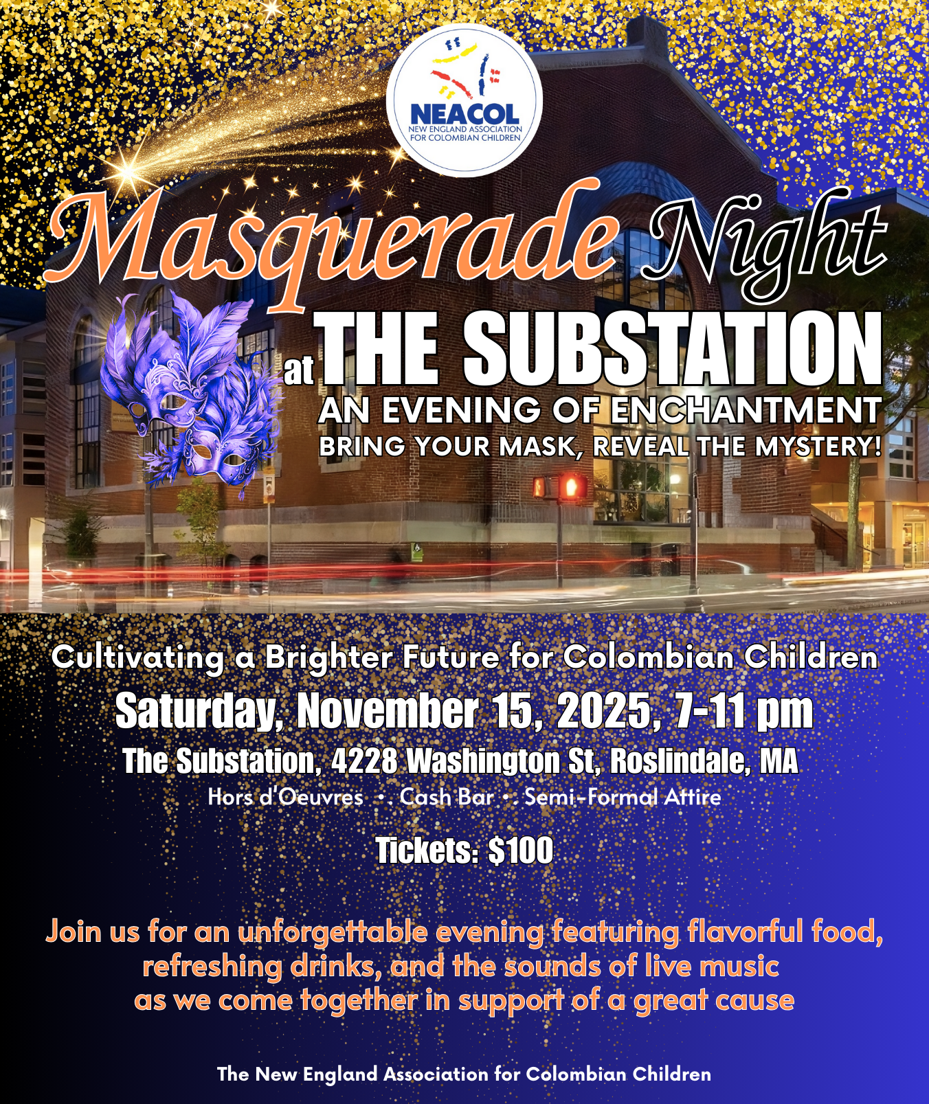 Become a 2025 NEACOL Masquerade Night Sponsor and Make a difference in the lives of Colombian children in need. Partnering with NEACOL supports our mission while giving your brand visibility and recognition within the Latin community in New England and beyond.